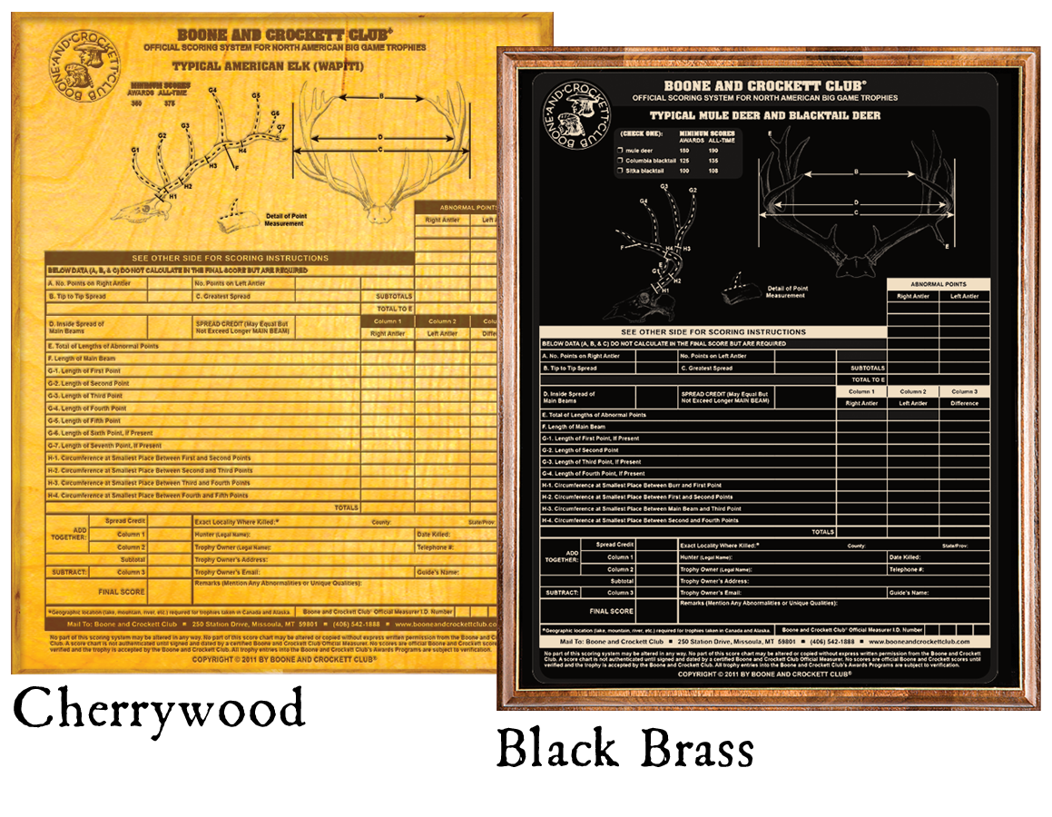 Each belt buckle is custom-made for you and your trophy, including a relief of the category, location, harvest date, category name, and score. You can choose from three different styles: Bronze, Sterling Silver, Sterling Silver with Gold Plate, or Hand-Engraved Sterling Silver Belt Buckle with 24K Gold Plated Highlights.