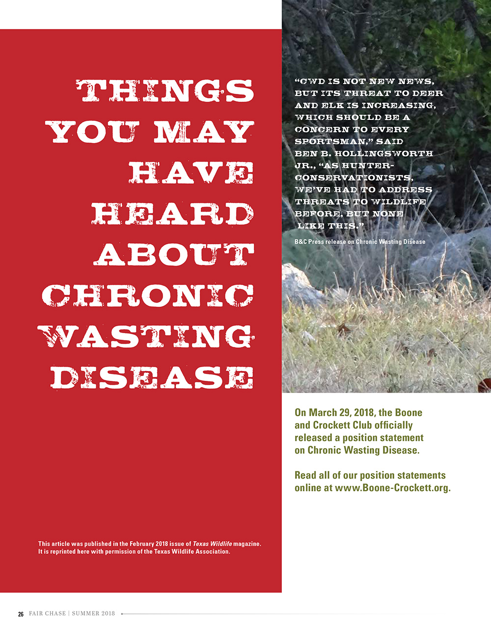 MISSOULA, Mont. April 28, 2022 – The Boone and Crockett Club thanks Senators Martin Heinrich and John Hoeven for introducing legislation to authorize federal funding to address chronic wasting disease (CWD) more holistically. The CWD Research and Management Act introduced today is a companion bill to H.R. 5608 that passed the U.S. House of Representatives with an overwhelming vote of 393-33 in early December last year. The bill authorizes $35 million each to research and management efforts and requires 75% of the management funding be directed to state and tribal wildlife agencies. If enacted, the bill will lay the groundwork to provide additional resources to states and tribes to proactively address CWD outbreaks and to manage this always-fatal disease of deer, elk, and moose.
